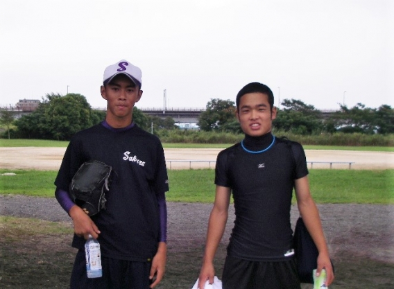 右が最近よく来てくれる青木悠馬君(八千代松陰高等学校3年)です。若いコーチが来てくれると本当に助かります。そして左が菊地レハン君(市川市立第八中学校2年)です。現在は佐倉シニアに所属しております。鶴指少年野球部在籍時にはエースで完全試合達成や市川選抜など数々の功績を残しております。お二人とも有難う御座いました。これからも時間があるときは何時でもお手伝い宜しくお願い致します。