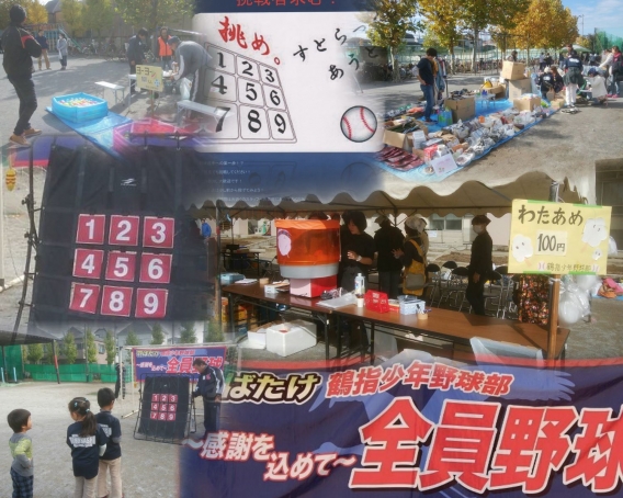 11月12日のつるさし祭に出店させて頂きました「綿菓子・チュロス」「バザー」「ヨーヨー」「ストラックアウト」はお陰様で大盛況で終了する事が出来ました。お越しいただいた皆様、有難うございました。また準備にご協力頂きました学校の皆様、PTAの皆様、お母さま方、コーチの皆様お疲れ様でした。有難う御座いました。